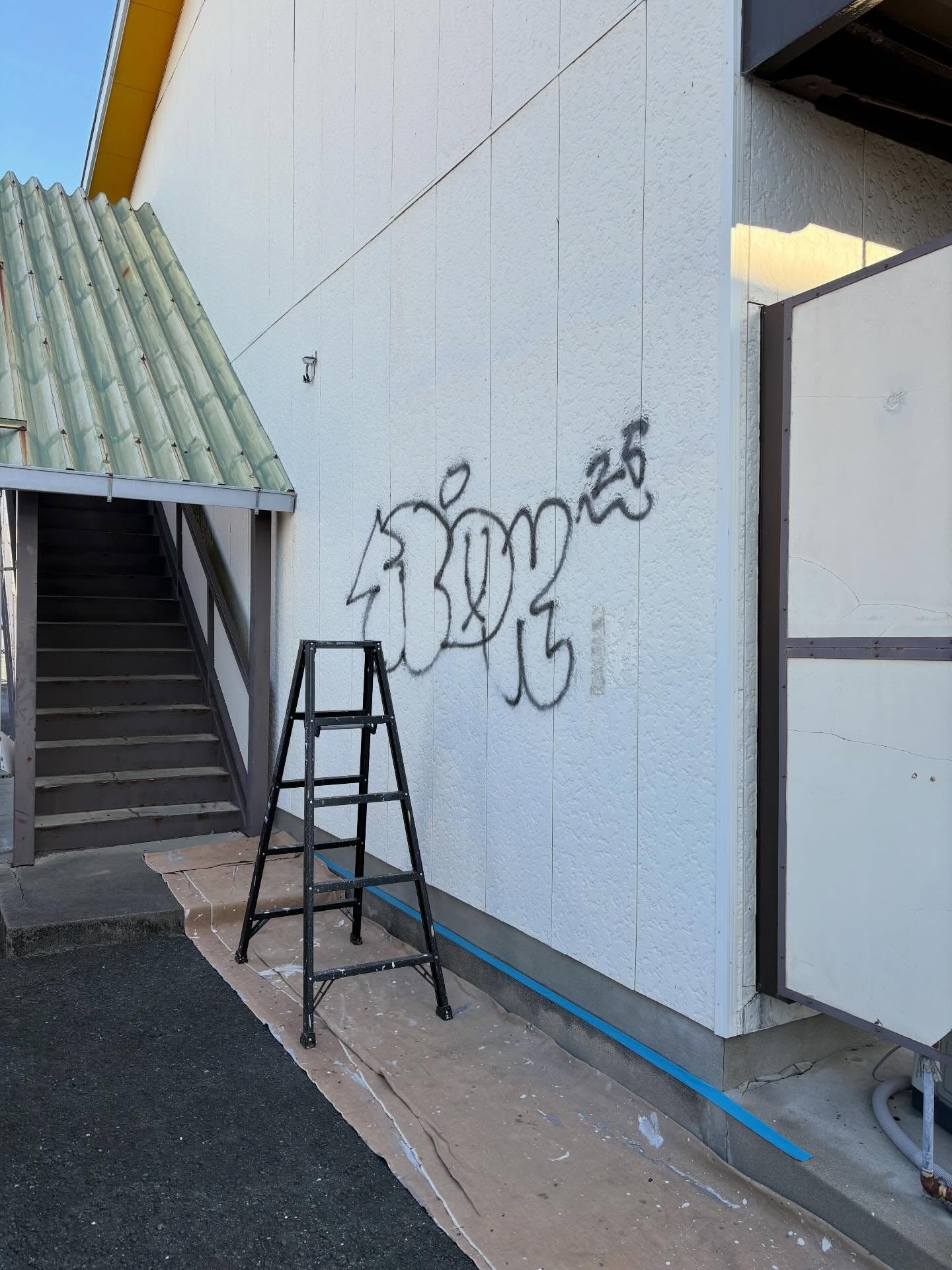 ⁡アパートの外壁の落書きを塗装して消しました。