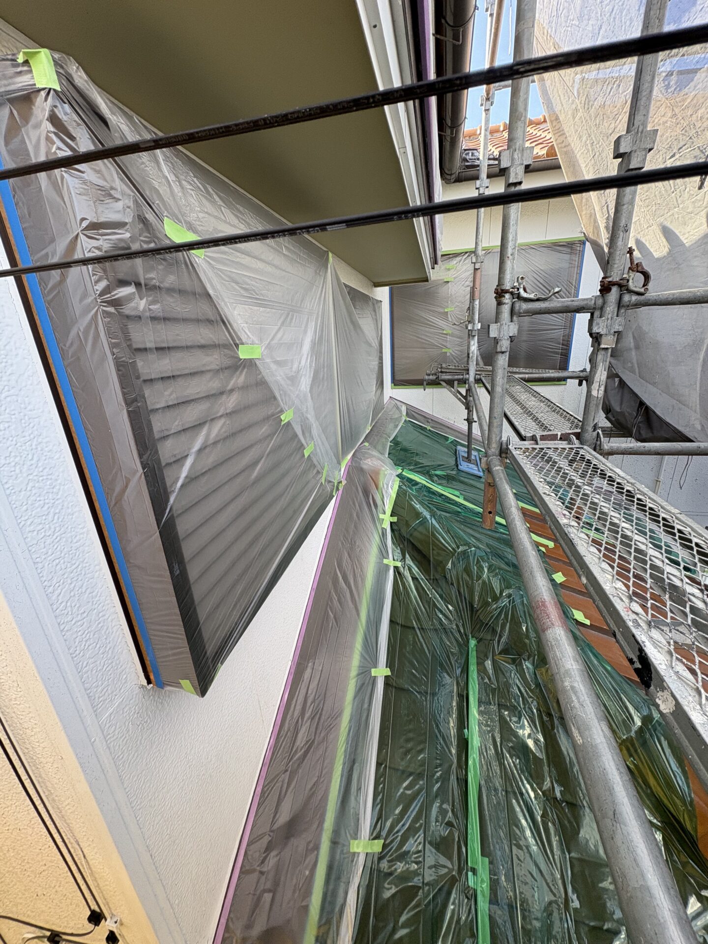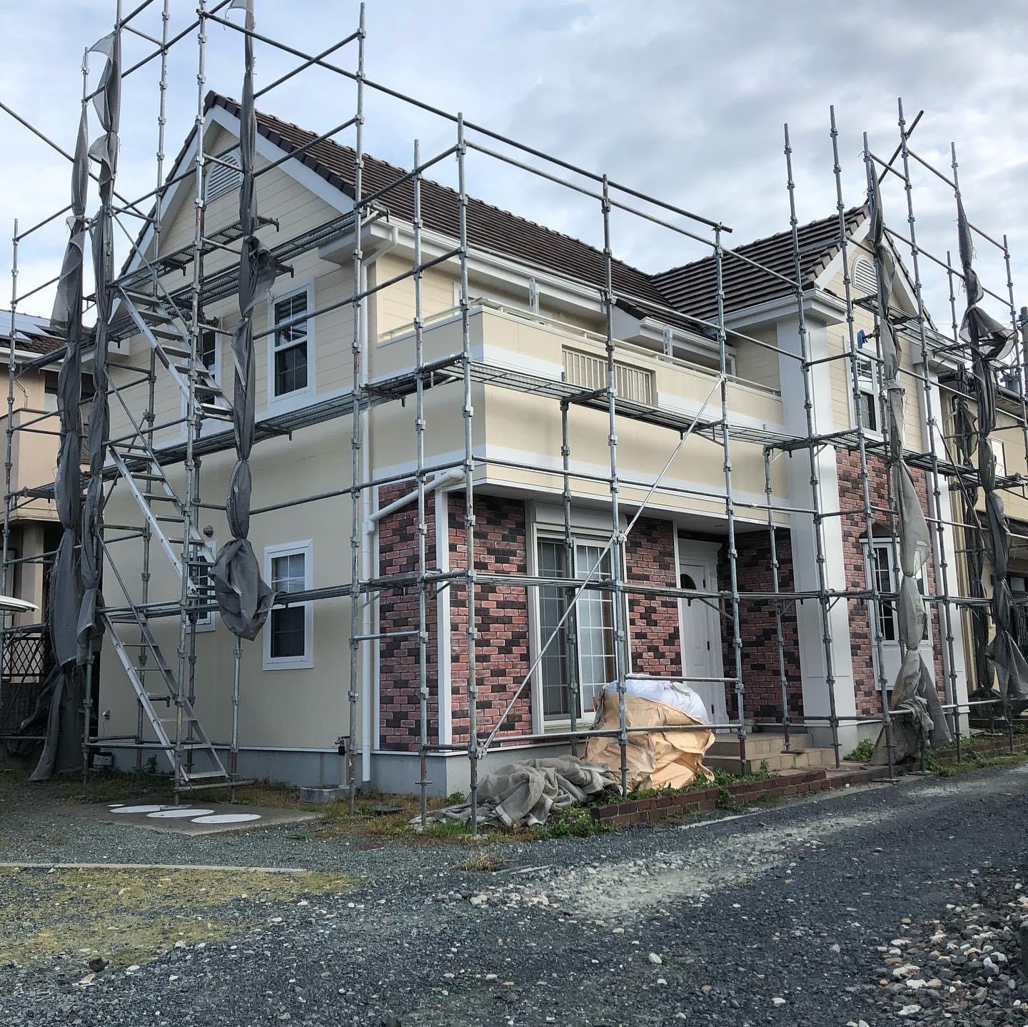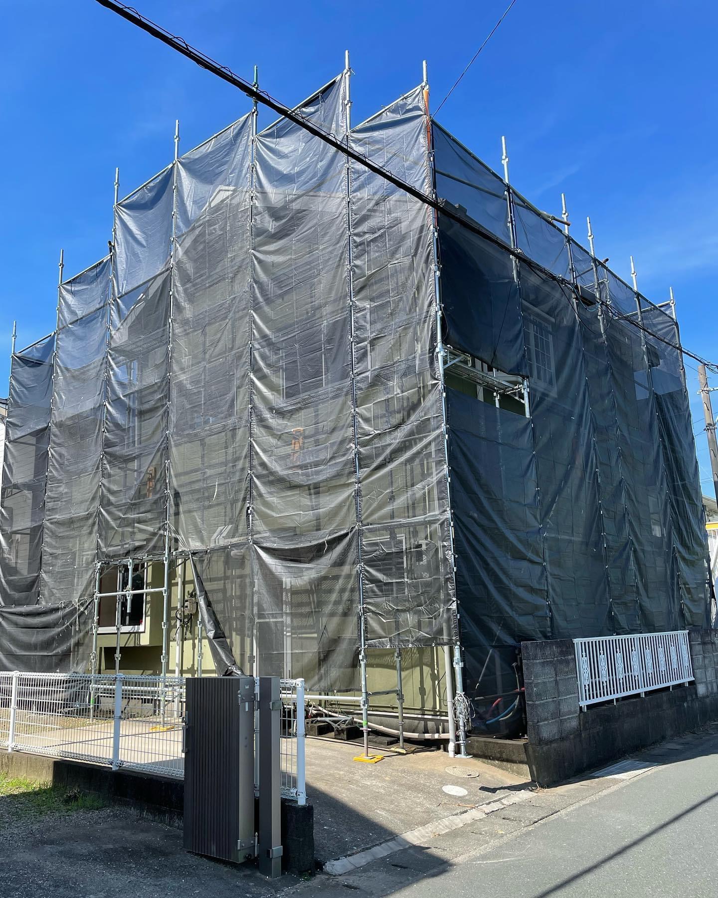 安全な施工のための足場を組み立て、工事完了後に解体します。