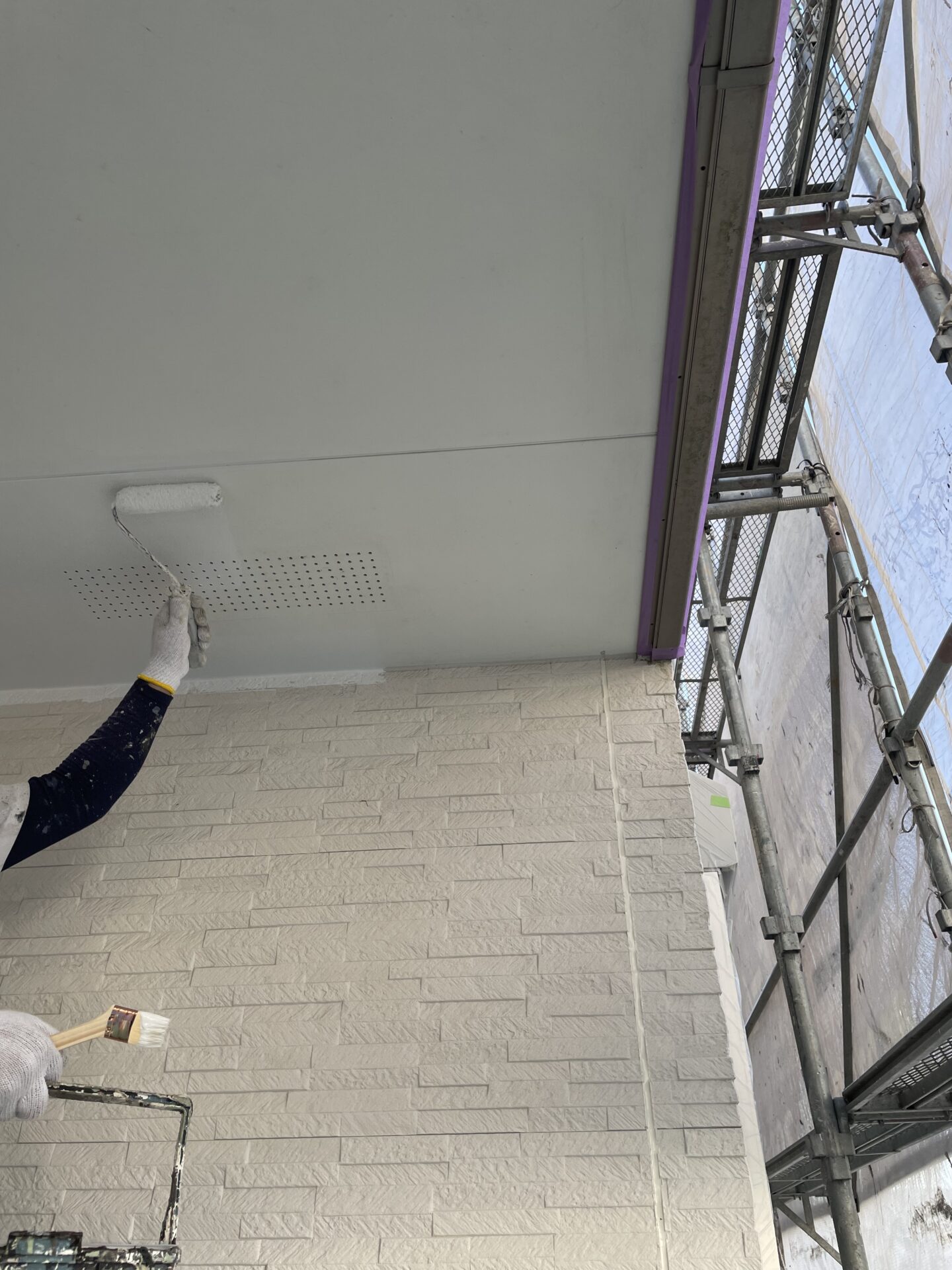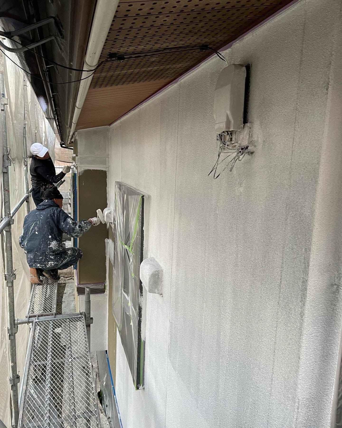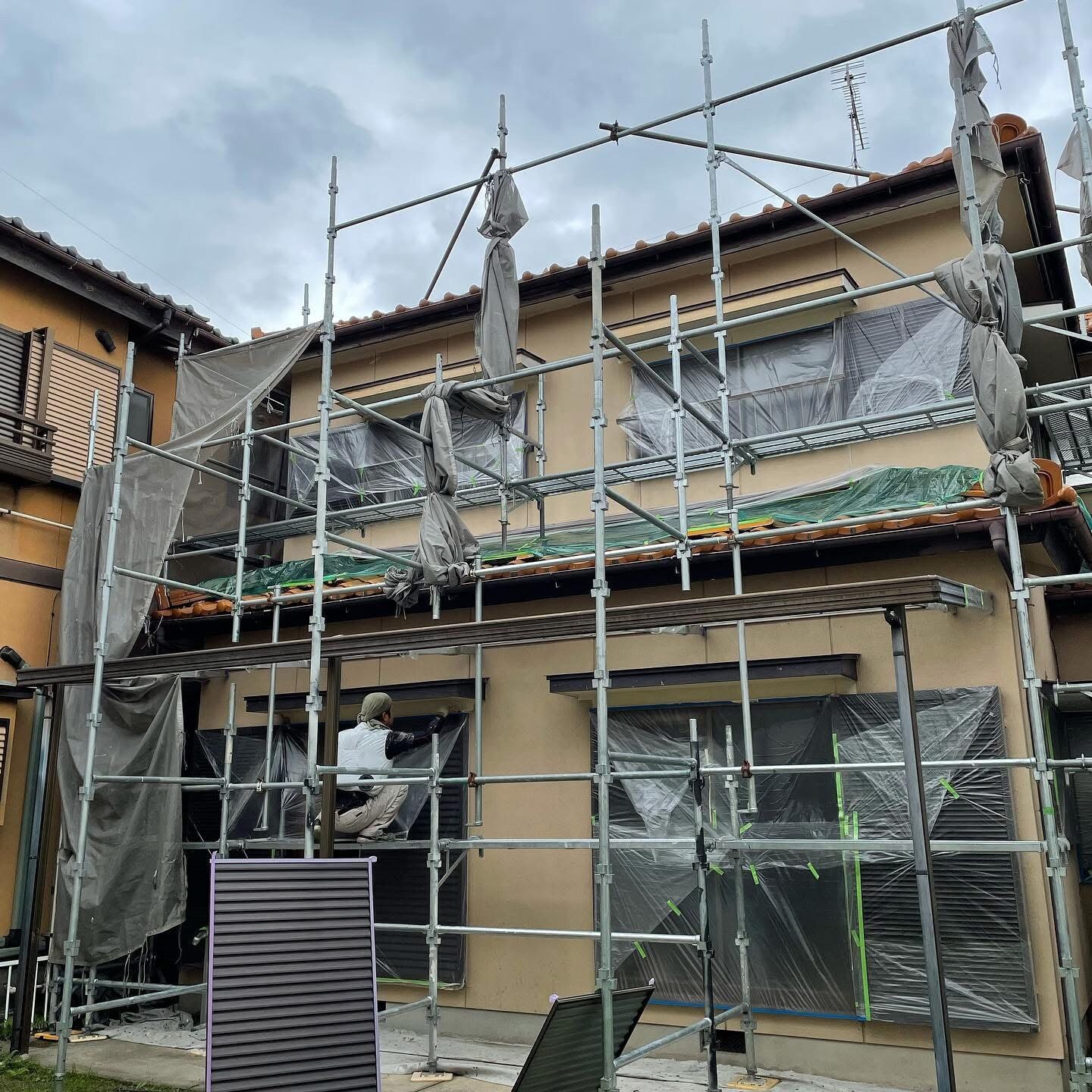 安全な施工のための足場を組み立て、工事完了後に解体します。
