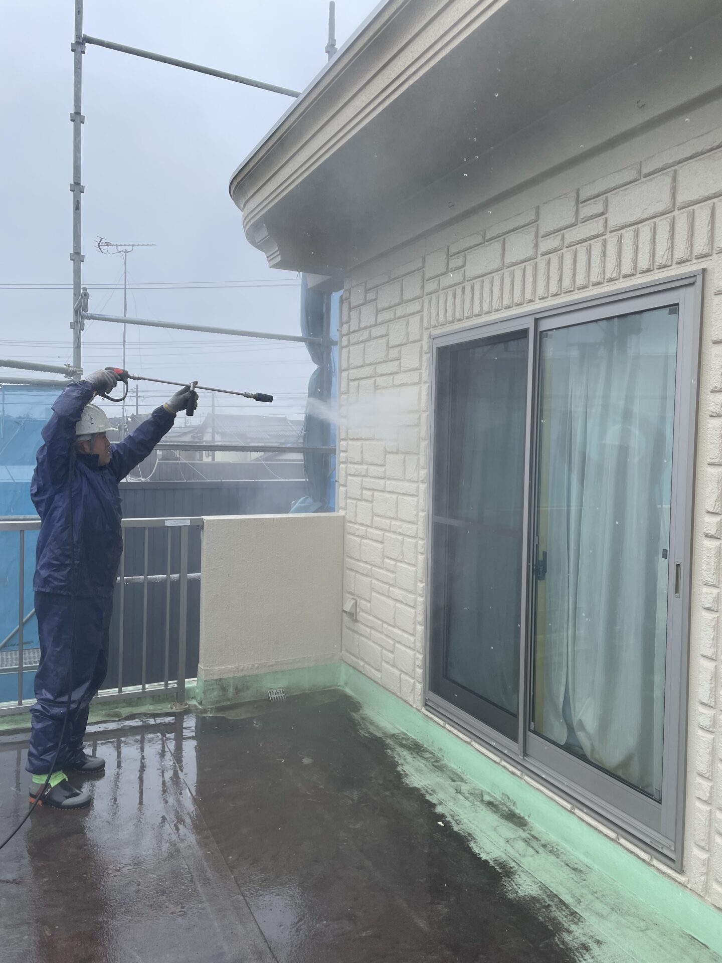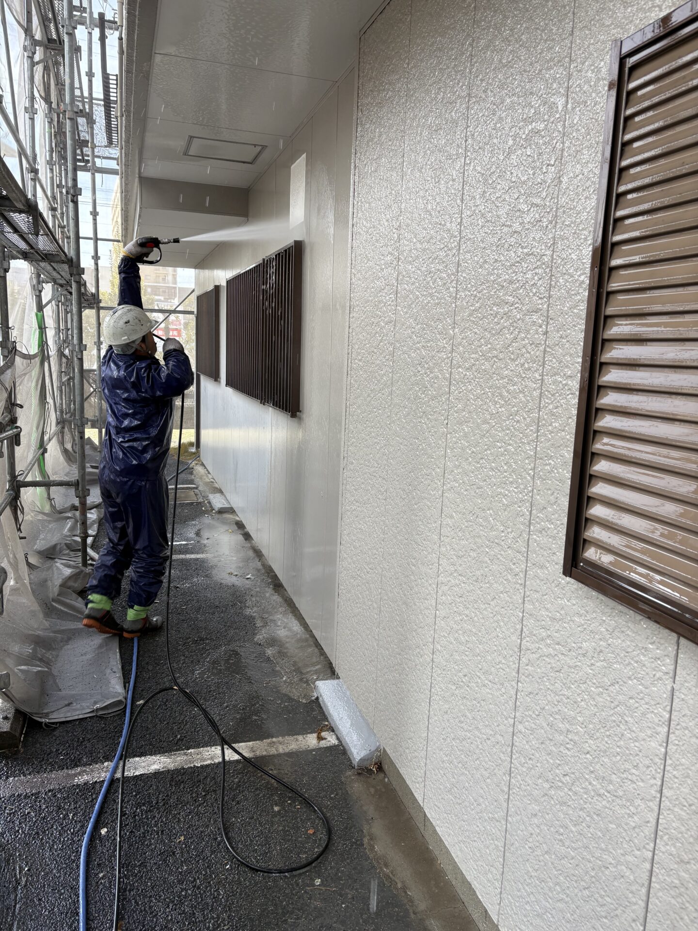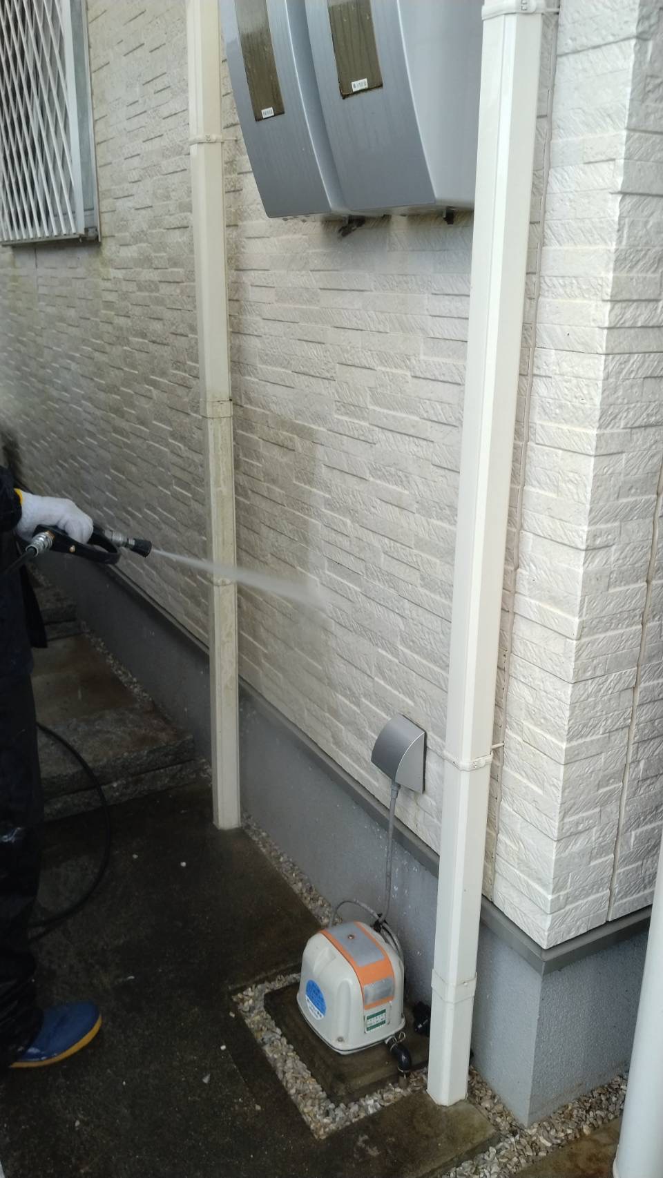 塗装の密着性を高めるために外壁の汚れを高圧洗浄で徹底的に除去します。